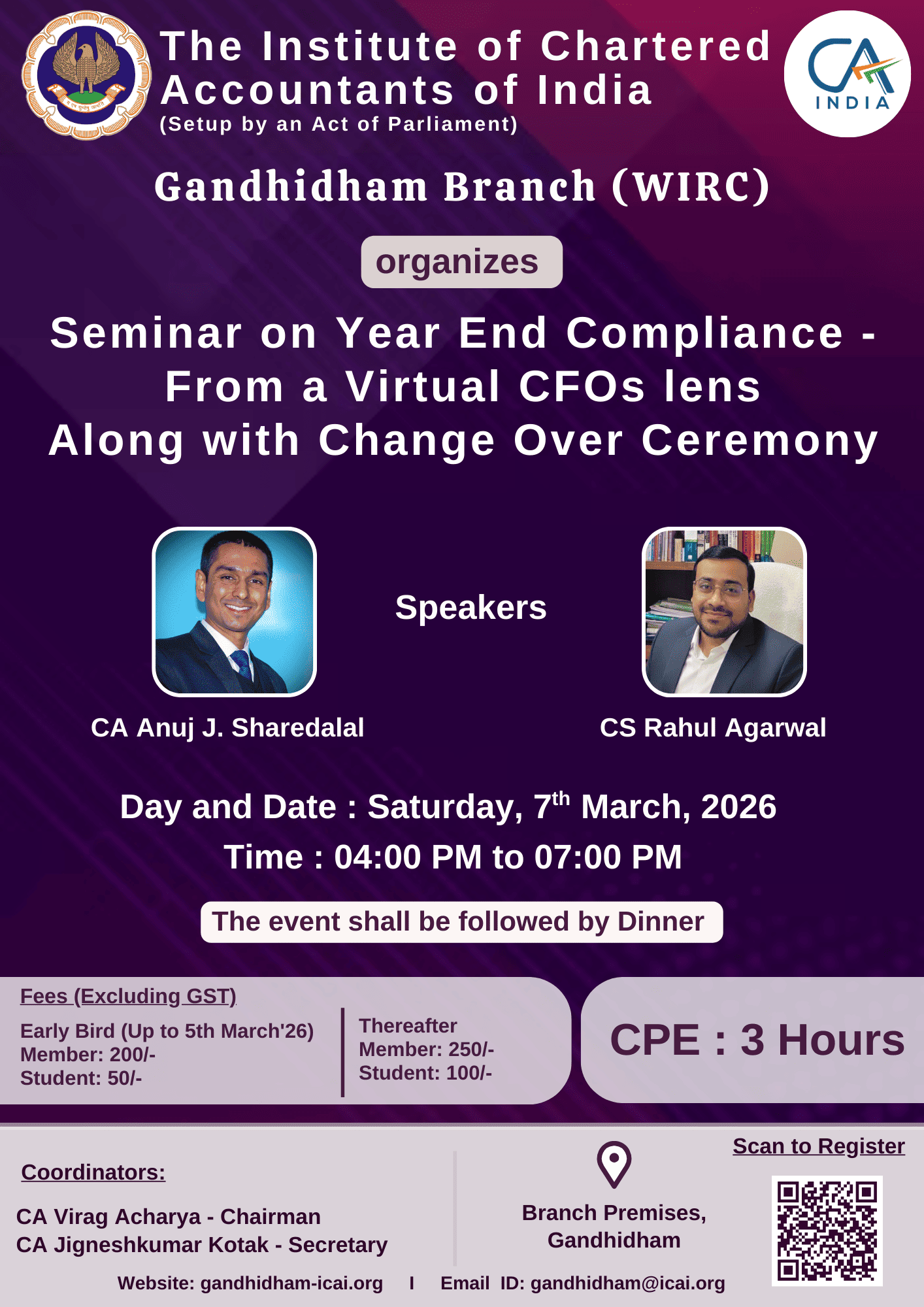 Title : Seminar on Year end Compliance - From a Virtual CFOs lens Along with Change Over Ceremony