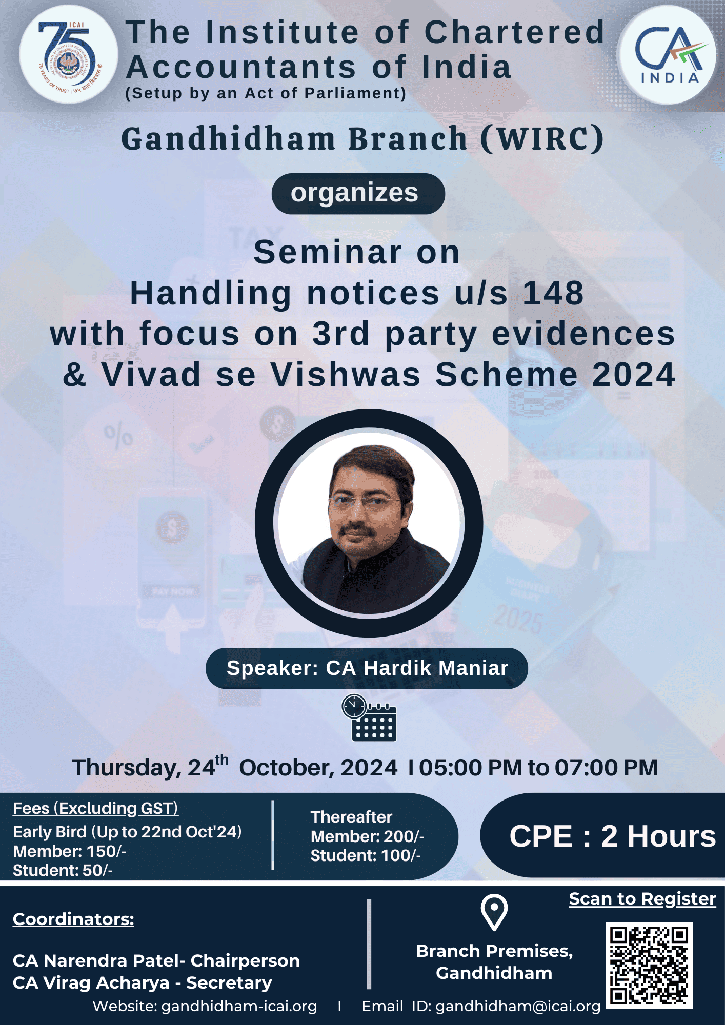 Title : Seminar on Handling notices u/s 148 with focus on 3rd party evidences & Vivad se Vishwas Scheme 2024