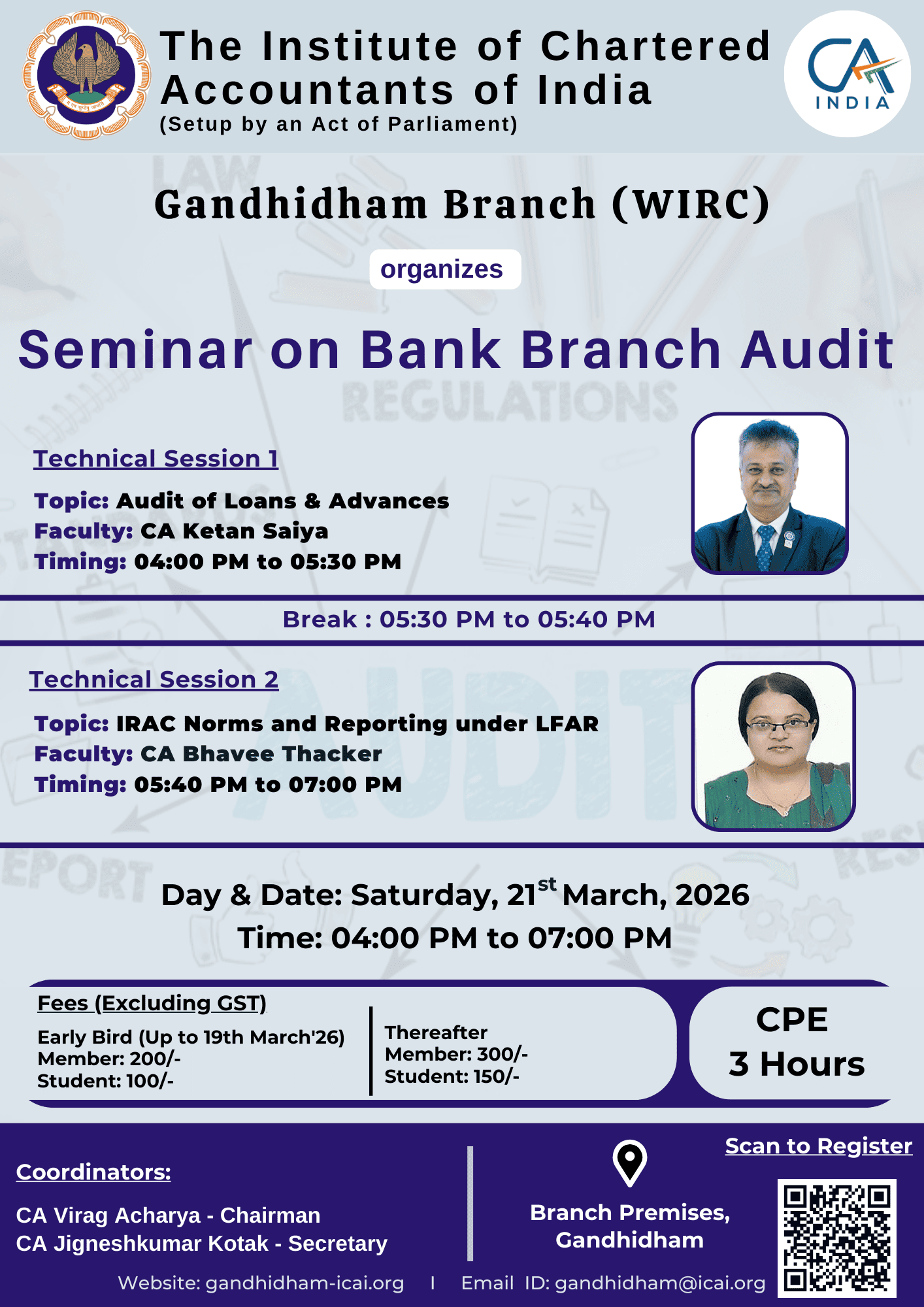 Faculty : 1. CA Ketan Saiya, 2. CA Bhavee Thacker